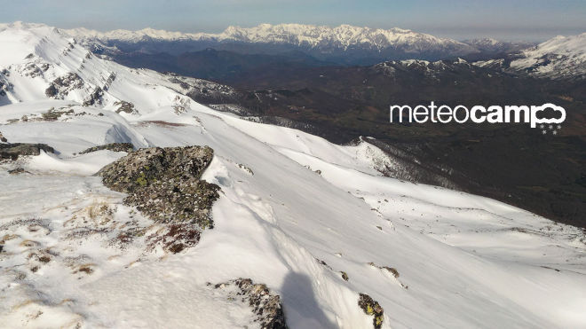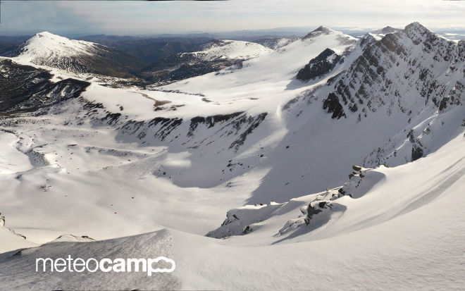 Fotos panorámicas del manto de nieve desde pico Hijedo (La Tabla) en las que puede apreciarse la cantidad de nieve acumulada.